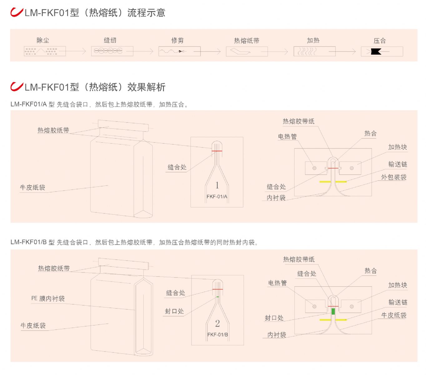 LM-FKF系列連續(xù)式縫包熱合封口機(jī)適用于聚酯編制袋、牛皮紙袋、多層紙袋或紙塑復(fù)合袋的封口包裝,該機(jī)可按編程自動完成包裝袋袋口的除塵、修剪、縫合、剪線辮、包紙帶、剪紙帶、熱封、壓合、計數(shù)等工序。經(jīng)封口、縫合、包紙帶、熱壓的包裝袋密封性能極佳,可防塵、防蛀、防潮、防污染,使包裝物受到妥善的保護(hù)。